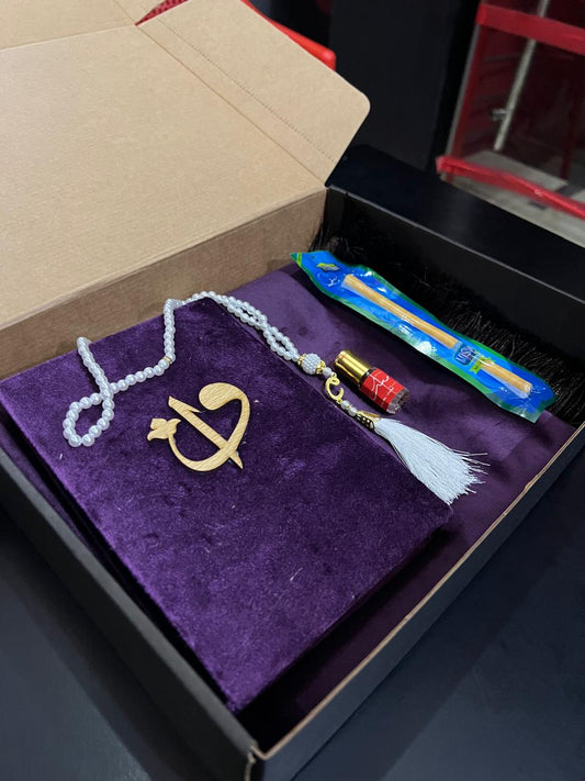 جمل هدية: مجموعة من القرآن الكريم والمصحف مع سجادة الصلاة