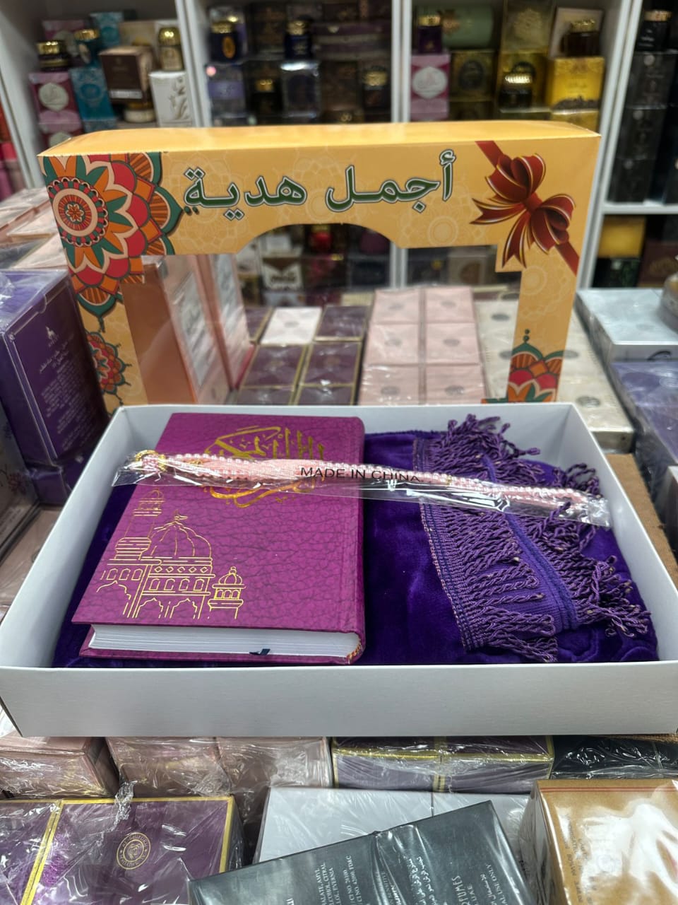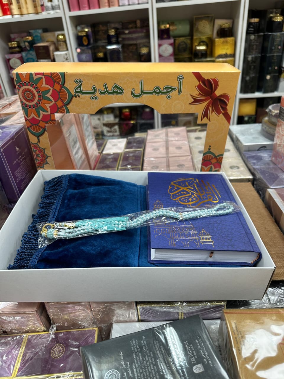 جمل هدية: مجموعة من القرآن الكريم والمصحف مع سجادة الصلاة